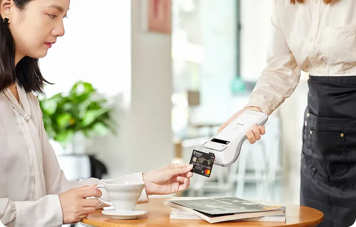 Proposez à vos clients étrangers leurs moyens de paiement préférés (JCB, UPI, Diners…) ou de payer dans la devise de leur pays d’origine avec le Change Dynamique au point de vente (DCC). -